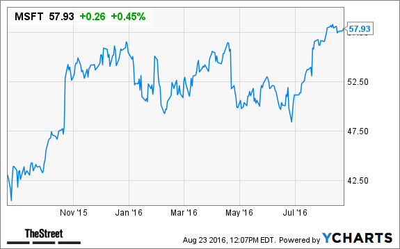 NEW YORK (TheStreet) — Shares of Microsoft (MSFT) were gaining in early-afternoon trading on Tuesday as the company announced a deal with Lenovo (LNVGY) to pre-load Microsoft software onto Lenovo’s devices.